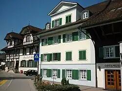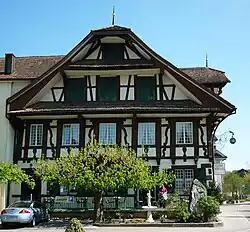 Bedeutendster Profanbau ist der Gasthof Schwanen. Das zweistöckige Gebäude mit einem abgewalmten Satteldach und zwei mächtigen Dachausbauten stammt aus dem Jahr 1615; der obere Teil wurde 1681 umgebaut. Bis 1798 war der Gasthof Amts- und Gerichtshaus des luzernischen Amtes Merenschwand. 1830 begann hier der Freiämtersturm unter Johann Heinrich Fischer, dem damaligen Wirt.[10]