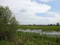 Entlang der ehemaligen Entwässerungsgräben sowie in Randbereichen herrscht eine hohe Biberaktivität. Durch den Bau von Dämmen und den Rückhalt des Wassers haben sich ausgedehnte Schilfflächen gebildet. Die zahlreichen Tümpel und Kleingewässer sind meist nährstoffarm und weisen Vorkommen von Armleuchteralgen auf.