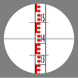 - Optische Distanzmessung mit Nivellierlatte (3 bis 5 m lang) und Fadennetz: bei dm/cm-Teilung (Zielung mit Theodolit) etwa 5 cm Auflösung