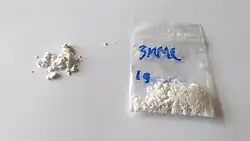 Wie bei anderen synthetischen Cathinonen gibt es für 3-MMC keine bekannte therapeutische Verwendung. Die Designerdroge liegt normalerweise in Form von weißem Pulver oder Kristallen vor.[3][4]