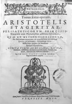 Die Meteorologica von Aristoteles sind die älteste umfassende Abhandlung zum Thema Meteorologie. Sie wurden um 340 v. Chr. geschrieben[1] und bestehen aus vier Büchern, von denen sich drei mit der Meteorologie und eines mit der Chemie befassen. Sie umfasst damit im Gegensatz zur modernen Naturwissenschaft des gleichen Namens alle „Naturerscheinungen, die sich ‚in der Schwebe‘ [...] abspielen“.[2]