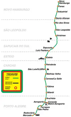 Die Metrô de Porto Alegre ist das Stadtschnellbahnsystem der Stadt Porto Alegre in Brasilien mit derzeit einer Linie und einem Peoplemover als Flughafenzubringer mit einer Gesamtstreckenlänge von 44,8 Kilometern und insgesamt 23 Haltestellen. Es wird auf Breitspur mit 1600 Millimetern gefahren, die Versorgung mit 3000 Volt Gleichstrom erfolgt über Oberleitung. Die Bahnstrecke ist durchgehend zweigleisig und überwiegend ebenerdig. Aktuell transportiert werden rund 110.000 Passagiere pro Tag.[1]