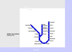 Eröffnet wurde die Metro am 29. Dezember 1959 als Y-förmiges Netz zwischen Sete Rios, Entre Campos und dem gemeinsamen Endbahnhof Restauradores. Danach wurde die Strecke im Süden weiter zu den Bahnhöfen Rossio (1963), Socorro (1966), Anjos (1966) und schließlich Alvalade (1972) geführt.