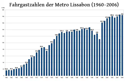 - ↑ Offizielle Fahrgastzahlen der Metropolitano de Lisboa, EPE ( vom 4. Mai 2009 im Internet Archive) (portugiesisch, englisch)