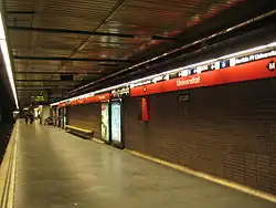 Die Metrolinie 1 ist eine U-Bahn-Linie der Metro Barcelona. Die Linie hat 30 Stationen, von denen sich alle außer Mercat Nou im Tunnel befinden. Die Streckenlänge beträgt 20,2 Kilometer.[1] Die Linie verläuft von Bellvitge, einem Stadtteil von L’Hospitalet de Llobregat, bis in den nordöstlichen Vorort Santa Coloma de Gramenet. Aufgrund ihrer Farbe in den Liniennetzen wird sie auch als „Línia vermella“ („Rote Linie“) bezeichnet.
