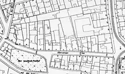 Vorderhäuser Oberstraße 7 und 8 mit Durchgängen zum Nordstädter Gesellschaftshaus und zum Saalbau des späteren Metropol-Theaters; Haus-Nummer 8 (links) ist heute noch erhalten