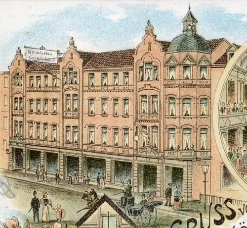 Grußkarte (Ausschnitt) zu „Hannover unter Wasser. Zur Erinnerung an die 25. Aufführung“; sogenannte „Künstlerkarte“, Verlag Mannheim & Co., Berlin, um 1903