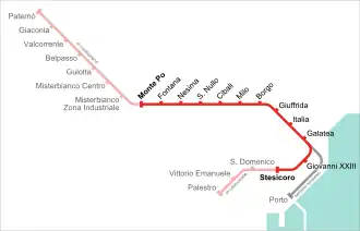 Am 30. März 2017 wurde der Neubauabschnitt Nesima–Borgo eröffnet, der offizielle Fahrgastbetrieb am 31. März 2017 aufgenommen.[3] Am 22. Juli 2024 wurde daran anschließend ein weiterer Streckenabschnitt bis zur Station Monte Po, an der Stadtgrenze zu Misterbianco gelegen, mit einer Länge von 1,7 Kilometern eröffnet, wobei ursprünglich eine Eröffnung im Jahr 2022 vorgesehen war.[4]