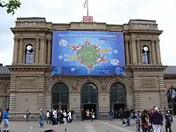 Werbeplakat am Hauptbahnhof im Mai 2009: Die Coface Arena kommt!