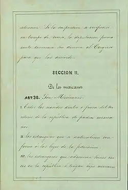 Geregelt wurde nur das Erfordernis für Staatsämter und bestimmte höhere Beamtenstellen, dass die Inhaber Mexikaner zu sein haben. Definiert wurden solche als vor 1810 in Spanisch-Mittelamerika geboren zu sein und hier zu wohnen.[14][6]