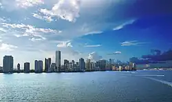 Die Hurrikansaison dauert zwar offiziell vom 1. Juni bis zum 30. November, aber die Bildung von tropischen Wirbelstürmen außerhalb dieser Periode ist nicht ungewöhnlich. Die höchste Wahrscheinlichkeit dafür, dass Miami von einem Hurrikan getroffen wird, besteht während des Zeitraums, in dem die meisten Kap-Verde-Typ-Hurrikane entstehen, also zwischen Mitte August und Ende September. Miami wurde seit Hurrikan Cleo 1964 von einem direkten Treffer verschont.[10] Viele tropische Wirbelstürme hatten Auswirkungen auf die Stadt, darunter vor allem die Hurrikane Betsy 1965, Andrew 1992, Irene 1999 sowie Katrina und Wilma in der sehr aktiven Hurrikansaison 2005. Ein tropisches Tiefdruckgebiet, das sich später über dem offenen Atlantik zum Tropischen Sturm Leslie entwickelte, verursachte im Jahr 2000 Rekordniederschlagsmengen und Überflutungen im Stadtgebiet. Durch seine Lage am Rand des Ozeans und auf der niedrig gelegenen Küstenebene gilt Miami neben New Orleans und New York City als eine der am meisten durch einen Wirbelsturm gefährdeten Großstädte in den Vereinigten Staaten.[11] (siehe auch Hurrikan Irma)
