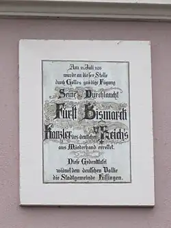 - 1874: Gedenktafel für das Kissinger Bismarck-Attentat von 1874 (Adresse: Bismarckstraße 16)