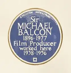 Gedenktafel für Michael Balcon an dessen früherem Haus in der Tufton Street, Westminster