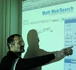 Ein großer Teil seiner konkreten Arbeit basiert auf Web-Content-Markupsprachen wie MathML, OpenMath, OMDoc und Systemen zur Verwaltung solcher Daten, z. B. Formelsuchmaschinen,[2] semantische Erweiterungen zu LaTeX.[3] oder die Konvertierung alter LaTeX-Dokumente aus dem arXiv.[4]