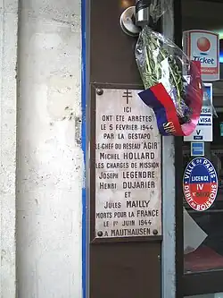 - Am ehemaligen Café des Chasseurs an der Rue du Faubourg-Saint-Denis 176 in Paris, nahe dem Gare du Nord, erinnert eine Marmortafel an die Festnahme der vier Agir Mitglieder vom 5. Februar 1944 durch die Gestapo.