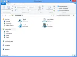 Im Windows-Explorer werden vom Benutzer die gespeicherten Dokumente und Ordner navigiert, angelegt und gesichtet. Es können auch in einem zentralen Bereich alle laufenden Kopier- und Löschvorgänge pausiert, fortgesetzt und abgebrochen werden. Diverse umschaltbare Ansichtsoptionen wie Miniaturansichten, Listen, Details, Vorschaufenster usw. stehen dem Benutzer zur Verfügung, um sich in der Vielzahl der Dateien und Ordner schnell und übersichtlich zurechtzufinden.[37] Zudem erhält der Datei-Explorer eine neue Ribbon-Menüleiste, wie sie bereits bei Microsoft-Office-Produkten seit 2007 bekannt ist, wodurch er übersichtlicher gestaltet werden soll, da dort die am häufigsten genutzten Befehle direkt zur Auswahl stehen. Diese zusätzliche Leiste kann vom Benutzer ein- und ausgeblendet werden. Dies ähnelt der Bedienung von Microsoft Office ab der Version Office 2007. Neu im Datei-Explorer ist auch, dass sich ISO-Dateien direkt ohne zusätzliche, externe Software mounten lassen. Dem darin enthaltenen Dateisystem wird entsprechend ein Laufwerksbuchstabe zugewiesen.[38] Eine Funktion zum Defragmentieren von Laufwerken gibt es auch weiterhin, jedoch wird diese jetzt als Optimieren bezeichnet.[39]