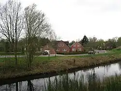 Der Bau des Gebäudes muss also vor 1817 erfolgt sein. Beim Besitzer des wiederaufgebauten Gebäudes dürfte es sich um einen Holländer gehandelt haben, denn ein solcher verkaufte das Grundstück nach einem erneuten Brand im Jahre 1880. Bisher waren die Gebäude in unmittelbarer Nähe zur Gemarkungsgrenze Schirum beheimatet. Der Neubau, fertiggestellt im Jahre 1882, wurde weiter in Richtung des im Bau befindlichen Ems-Jade-Kanals gesetzt, da der Gastwirt im Auftrag der Wasserbauverwaltung für monatlich einen Taler auf den Kanalbetrieb zu achten hatte. Bei einem erneuten Brand im Jahre 1921 wurde der Scheunentrakt ein Raub der Flammen; das Vorderhaus konnte gerettet werden.