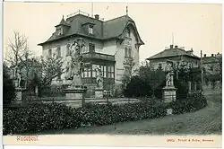 Am nordwestlichen Rand des Platzes errichteten die Gebrüder Ziller in den Jahren 1892/1893 eine größere Mietvilla, die als gespiegeltes Pendant zur südlich gelegenen Mietvilla Dr.-Schmincke-Allee 19 entworfen wurde. Im Jahr 1904 erhielt das Gebäude einen Anbau und 1928 wurde die Veranda ausgebaut. Die Architekten Patitz & Lötzsch bauten 1935 das gesamte Gebäude um, wobei sie die Fassade der Rückseite stark vereinfachten.