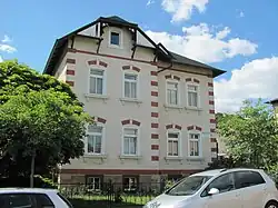 Die zweigeschossige, unter Denkmalschutz[1] stehende Mietvilla hat ein weit überkragendes, flach geneigtes und abgeplattetes Walmdach, ehemals mit Schieferdeckung. Für die Dachbelichtung sorgen dreieckige Dachgauben.