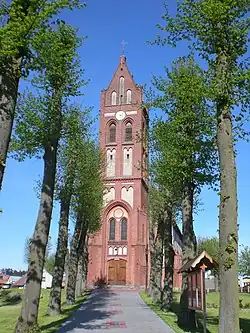 Die römisch-katholische Pfarrkirche des Heiligen Antonius von Padua wurde 1896 erbaut und 1903 geweiht. Es handelt sich um einen neugotischen Bau aus rotem Backstein mit einem charakteristischen Turm mit Satteldach, der die gesamte Struktur dominiert. Im Altar befindet sich ein Gemälde des Schutzpatrons Antonius von Padua, der das Jesuskind im Arm hält. Zur Ausstattung der Kirche gehören eine hölzerne Kanzel und eine romantische Orgel aus dem Jahr 1938.