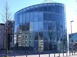 Das Zentrum wurde in Form zweier halbrunder, gläserner Atrien mit dahinterliegenden Büroräumen realisiert. Unter einer Klimahülle und direkt mit dem davorliegenden Park verbunden, erstrecken sich drei stählerne Stangen. Die Anlage wurde von passiven Umweltsystemen erschlossen. Insbesondere die natürliche Luftzufuhr der an den Außenwänden liegenden Büros spielte bei der Planung eine bedeutende Rolle.[2] ⊙