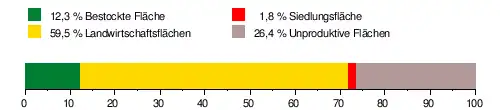 Das Einzugsgebiet besteht zu 12,3 % aus bestockter Fläche, zu 59,5 % aus Landwirtschaftsfläche, zu 1,8 % aus Siedlungsfläche und zu 26,4 % aus unproduktiven Flächen.