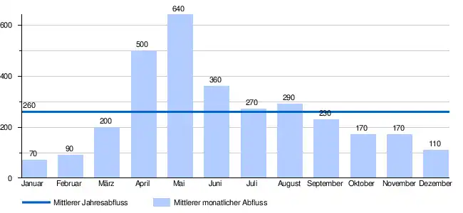 - ↑ Mittlere Abflüsse (m³/s) und Abflussregimetyp für das Gewässernetz der Schweiz (Bundesamt für Umwelt BAFU)