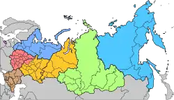 - Zentrum: Wolga-Ural und Westsibirien (westlicher Teil bis zum Baikalsee); Hauptquartier Jekaterinburg