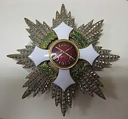 Großkreuzritter und Großoffiziere tragen einen achtstrahligen Bruststern mit der Rückseite des Ordenskreuzes auf der linken Brust.