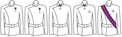 Komture trugen das Ordenszeichen am Hals, die beiden niedrigeren Klassen im Knopfloch am Band, das für die Ritter mit einer Rosette versehen war.