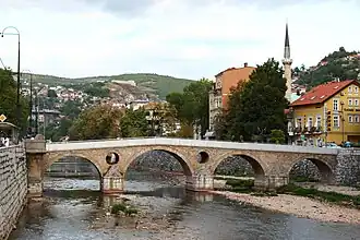 Die berühmteste der zahlreichen Brücken über die Miljacka ist die Lateinerbrücke aus osmanischer Zeit, in deren Nähe am 28. Juni 1914 der österreich-ungarische Thronfolger Franz Ferdinand und seine Frau Sophie durch den 20-jährigen bosnischen Serben Gavrilo Princip erschossen wurden. Dieses Attentat gilt als Auslöser für den Ersten Weltkrieg. Das Tal der Miljacka östlich des Alten Rathauses bis hin zur Ziegenbrücke ist ein beliebtes Ausflugsgebiet der Sarajevoer Bevölkerung.