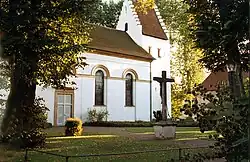 Die katholische Pfarrkirche St. Johannes Baptist ist ein satteldachgedeckter Saalbau mit einem eingezogenen Anbau im Westen, der den hinteren Chorraum und die Sakristei beherbergt.
