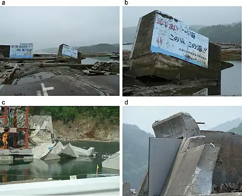 Schäden am Seawall und Kai in Minamisanriku (11 Wochen nach der Tōhoku-Katastrophe 2011).[16]