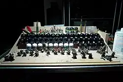 Andere gängige Maßstäbe für Modelle sind 54 mm und 72 mm.[8] Diese sind weniger verbreitet, da nur wenige Spiele Modelle dieser Größe verwenden. Unternehmen, die Modelle in diesen Größen herstellen, sind oft unabhängige Hersteller von Modellen, die als Ausstellungsmodelle gedacht sind. Da diese Modelle nicht oft für Spiele verwendet werden, leiden sie auch nicht so sehr unter der Maßstabsverschiebung. Der größere Maßstab bietet mehr Möglichkeiten für mehr Details, die in kleineren Maßstäben nicht gegossen werden können, und die größere Größe bietet auch mehr Platz für solche Details. Aufgrund der größeren Größe und der höheren Detailgenauigkeit sind diese Maßstäbe oft die erste Wahl für Wettbewerbsmaler, sofern die Größenbeschränkungen dies zulassen.