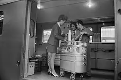 Auch die DSG und die Mitropa setzten Minibars ein. Diese ließen sich allerdings gerade in Abteilwagen auf den Übergängen im fahrenden Zug schwer manövrieren. Im ICE werden die wesentlich handlicheren Snack Caddies eingesetzt, die jedoch geringere Kapazitäten haben.[1]