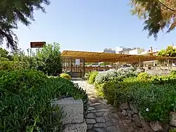 Der Haupteingang der „Villa“ befand sich im Osten. Hinter zwei Säulen befand sich der Osthof (Raum 2), ein Portikus, der als Lichtschacht diente. Ihm schloss sich hinter einer Türtrennwand eine Halle (Raum 2a) an, von der der Korridor 11 nach Westen abgeht und zwei Türen im hinteren Bereich zu weiteren Räumen im Norden und Süden führten. Rechts und links des Korridors gibt es Zugänge zu kleineren gepflasterten Räumen, darunter zwei mit Bänken. Während Raum 15 nur eine Bank an der der Tür gegenüberliegenden Wand besitzt, zieht sich in Raum 12 eine Bank von der Ostwand um die Ecke die Südwand entlang. Beide Wände waren mit Gips verkleidet. Der Boden ist in der Mitte des Raumes mit Eisensandstein ausgelegt, umgeben von einem Rand aus Gipsplatten. Im Westen schloss sich hinter einer Säule Raum 13 als Lichtschacht an.[10]