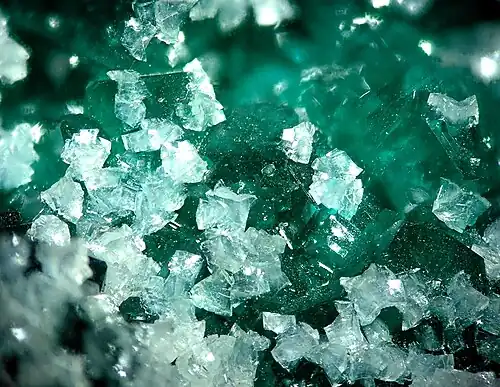 - ↑ a b c d e f g h Minrecordite. In: John W. Anthony, Richard A. Bideaux, Kenneth W. Bladh, Monte C. Nichols (Hrsg.): Handbook of Mineralogy, Mineralogical Society of America. 2001 (englisch, handbookofmineralogy.org [PDF; 65 kB; abgerufen am 14. März 2019]).