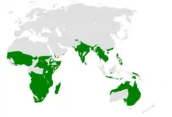 Das Verbreitungsgebiet der Gattung ist sehr groß. Es reicht von Afrika über Asien bis nach Australien. Der Verbreitungsschwerpunkt der Art ist Afrika.