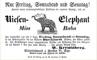 Miss Baba († 1857) war eine indische Elefantenkuh, die Mitte des 19. Jahrhunderts von einer Wandermenagerie im Besitz einer Familie Kreutzberg durch Mitteldeutschland getrieben und zur Schau gestellt wurde. Der Elefant konnte einige Dressurstücke vorführen, erlitt aber ein spektakuläres und qualvolles Ende, das im bäuerlichen Thüringen des 19. Jahrhunderts weithin Aufsehen erregte und an das in Niederroßla alle 25 Jahre mit einer Jubiläumsfeier, dem Elefantenfest, erinnert wird.