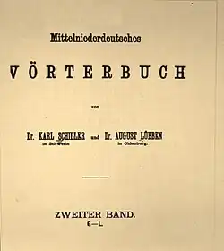 - ↑ August Lübben, Christoph Walther: Mittelniederdeutsches Handwörterbuch. Norden/Leipzig 1885–1888; Neudruck Darmstadt 1965.