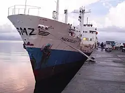 - Hafen: Der Hafen in Mkoani ist der wichtigste Hafen der Insel Pemba.[4] Er wurde in den Jahren 1925/26 erbaut und Anfang der 1990er Jahre mit EU-Unterstützung erweitert. Seither kann er von Schiffen bis 4,9 Meter Tiefgang, 75 Meter Länge und 6000 Tonnen Eigengewicht angefahren werden.[5][6] Fähren verbinden die Insel über Sansibar nach Daressalam.[7]