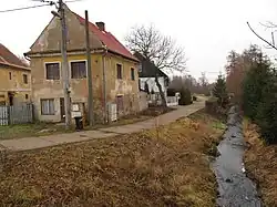 Nachbarorte sind Dvorek (Gehla), Dětaň (Gödesin), Kružín (Kruschina) und Dvérce (Wärzen) im Norden, Vroutek im Nordosten, Lužec (Lust) und Vesce (Wes) im Osten, Přibenice (Pribenz), Drahonice (Drahenz) und Řepany (Rschepan) im Südosten, Libyně (Libin) und Královské Údolí (Königsthal) im Süden, Libkovice (Liebkowitz), Dolní Záhoří (Unter-Dreihöfen), Horní Záhoří (Ober-Dreihöfen) und Kostrčany (Kosterschan) im Südwesten, Jeřeň (Girschen) und Kamýk (Jamiken) im Westen sowie Valeč (Waltsch), Skytaly (Skytal) und Vrbička (Kleinfürwitz) im Nordwesten.