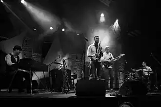 Die letzte Besetzung bildeten Felix Falk (Saxophon, Perkussion), Matti Klein (Fender Rhodes), Tobias Fleischer (Bass) und André Seidel.