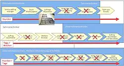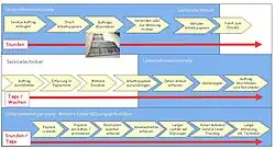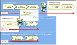 Zur Abwicklung eines effizienten Serviceeinsatzes benötigen Service-Techniker schon beim Auftragseingang schnell verfügbare, umfassende Informationen über Kunden und Produkte. Sind sie weiträumig im Einsatz, müssen die Geschäftsprozesse wie Beauftragung, Ersatzteilbestellung und Rückmeldung des Serviceeinsatzes über die Unternehmensgrenzen hinweg abzuwickeln sein. Nach Auftragserledigung sollte umgehend die Rechnungsstellung erfolgen, wofür eine zeitnahe Steuerung, Anpassung oder Nachkalkulation der Einsätze nötig ist. Die nebenstehende Abbildung zeigt die typische Auftragsabwicklung eines Kundendiensteinsatzes mit seinen einzelnen Schritten.