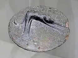 Original und Seagers Zeichnung eines Pyxisdeckels aus grünem Speckstein aus Kammergrab I