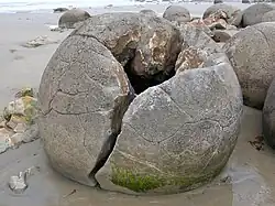 Die Moeraki Boulders (Maori: Kaihinaki) sind eine Anzahl ungewöhnlich großer kugelförmiger Konkretionen an der Koekohe Beach an der Küste von Otago auf der Südinsel Neuseelands zwischen Moeraki und Hampden. Die grau gefärbten Septarien liegen einzeln oder in Gruppen an der Küste. Die Erosion des hier an der Küste anstehenden Schluffsteins durch die Wellen legt regelmäßig weitere Kugeln frei.[1][2][3][4]