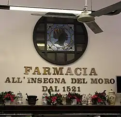 In Deutschland gibt bzw. gab es Apotheken, die nach einem – oder mehreren – Mohren benannt sind, in fast 100 Orten.[4] Mohrenapotheken finden und fanden sich in fast jeder größeren deutschen Stadt in Mittel- und Süddeutschland, wohingegen sie in Norddeutschland sehr selten sind. Auch in der Schweiz sind Mohrenapotheken selten, sind jedoch im östlichen Österreich häufiger zu finden.[5] Im heutigen Polen befinden und befanden sich ebenfalls Mohren-Apotheken (pl. apteka „Pod Murzynem”) in mehreren Städten Schlesiens, etwa in Breslau, Brieg, Glatz, Dzierżoniów oder Gleiwitz. Auch in Luxemburg gab es bis zum Jahr 2007 eine „Mouerenapdikt“.[6] In Italien tragen die Mohrenapotheken unterschiedliche Namen, etwa „farmacia dei mori“ oder „Farmacia all'insegna del moro“, in den Niederlanden hießen sie zumeist „Apotheek de Moriaan“. In Deutschland gibt es zudem die artverwandte Gruppe der „Mohrendrogerien“ sowie „Mauritius-Apotheken“ (etwa in Krefeld, Berlin, Jüterbog oder Meerbusch).