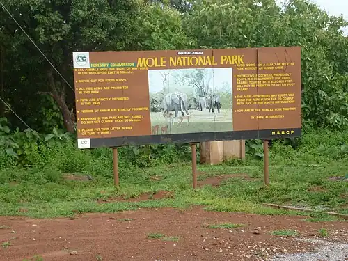 Der Mole-Nationalpark (englisch Mole National Park) ist ein Nationalpark in Ghana, der 1971 als erstes Tierreservat des Landes gegründet wurde. Mit 4840 km² ist er vor dem Digya-Nationalpark der größte Nationalpark Ghanas.[1] Der Mole-Nationalpark liegt im Nordwesten des Landes größtenteils in der Savannah Region, die im Vergleich zu den Küstengebieten Ghanas touristisch etwas schlechter erschlossen ist.