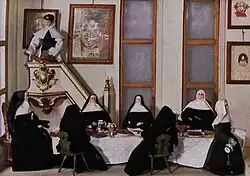 Zur Puppenstadt gehören auch eine Aufführung im Hoftheater, die Darstellung der Messe in einer barocken Kirche und Szenen aus dem Klosterleben der Ursulinen in Erfurt, darunter die Handarbeitstunde im Klosterpensionat und die geistliche Lesung im Refektorium.[23] Etliche weitere Räume, die Werkstätten und Läden von verschiedenen Handwerkern und Händlern, der Jahrmarkt, der Wochenmarkt und andere Szenen im Freien zeigen das bürgerliche und das bäuerliche Leben.[3]