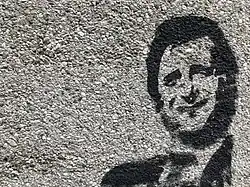 Helmut Fischer in seiner Rolle als Monaco Franze – Graffiti an einer Wand in München (2021)